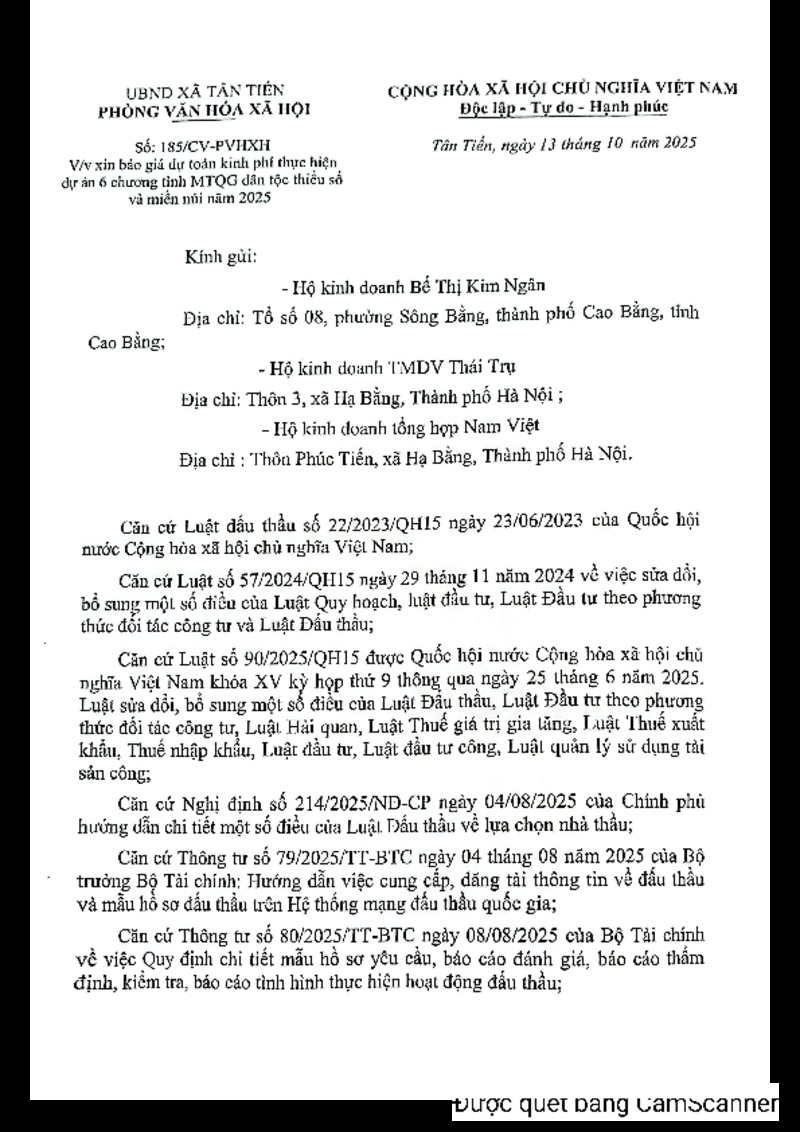 | Tiêu đề văn bản | CV xin báo giá dự toán kinh phí thực hiện dự án 6 chương tình MTQG dân tộc thiểu số và miền núi năm 2025 | ||