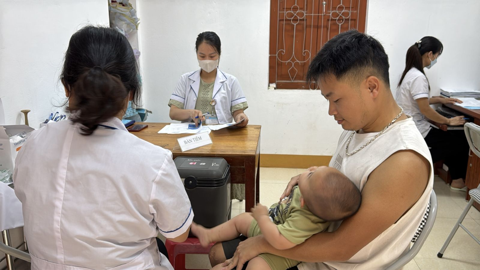 Trong hai ngày 16 và 17/4/2026, các bà mẹ đưa trẻ đến tiêm chủng được đội ngũ y, bác sĩ của Trạm Y tế xã thực hiện khám sàng lọc kỹ lưỡng trước khi tiêm như: đo chiều cao, cân nặng, kiểm tra thân nhiệt, nhịp tim và đánh giá tình trạng sức khỏe. Trên cơ sở đó, trẻ sẽ được đánh giá tình trạng sức khỏe và chỉ định tiêm chủng phù hợp theo từng độ tuổi. Trạm Y tế xã triển khai tiêm đầy đủ các loại vắc xin trong chương trình tiêm chủng mở rộng cho trẻ dưới 1 tuổi, bao gồm: lao, bạch hầu, ho gà, uốn ván, rota, bại liệt, sởi, viêm gan B.
