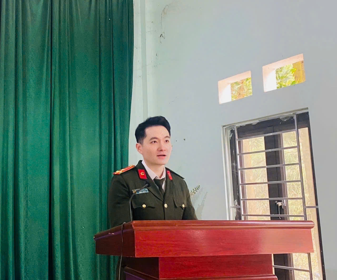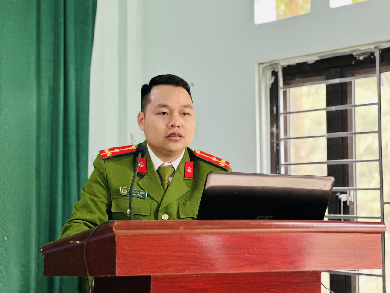 (Cán bộ Công an xã đang phát biểu vận động)