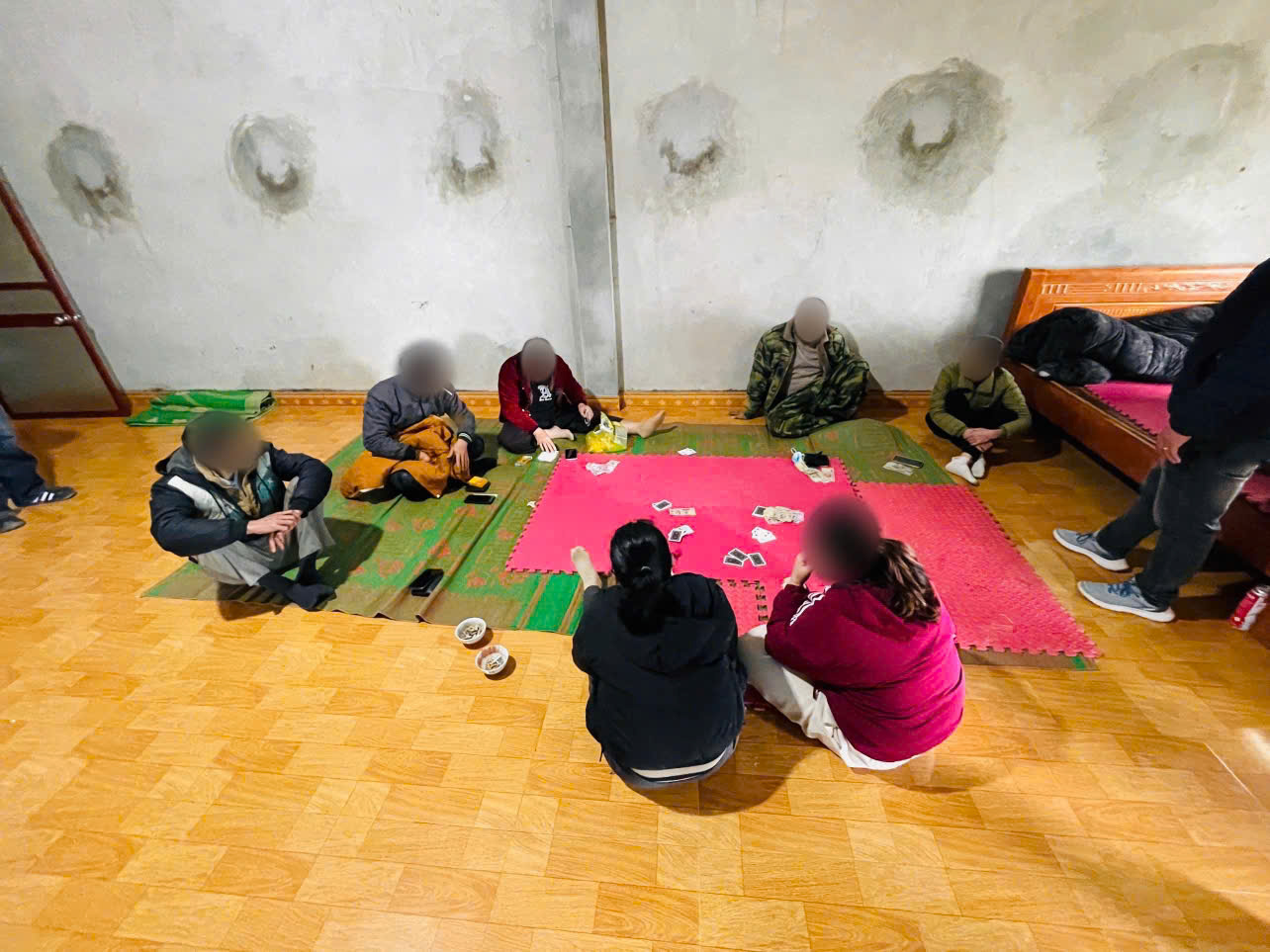 (Các đối tượng đánh bạc bị bắt quả tang khi đang thực hiện hành vi đánh bạc)