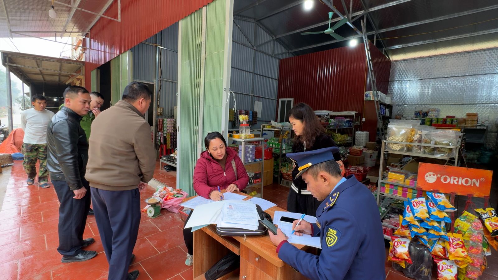 Theo đó, đoàn kiểm tra liên ngành vệ sinh an toàn thực phẩm của xã, đến kiểm tra các cơ sở kinh doanh các mặt hàng bao gói sẵn gồm: Bánh kẹo, bia rượu, nước giải khát, đồ đông lạnh tại chợ Áng Mò và thôn Pò Kiền. Qua kiểm tra, một số cơ sở chấp hành tốt các quy định về điều kiện bảo đảm an toàn thực phẩm và có hồ sơ pháp lý theo quy định. Tuy nhiên vẫn còn có chủ cơ sở kinh doanh vi phạm các quy định về an toàn thực phẩm, đoàn kiểm tra đã xử phạt hành chính với tổng số tiền là 04 triệu đồng, về hành vi kinh doanh hàng hóa không rõ nguồn gốc xuất xứ, đồng thời đoàn kiểm tra đã yêu cầu cơ sở kinh doanh trực tiếp tiêu hủy số hàng vi phạm ngay tại hiện trường. Đồng thời nhắc nhở, yêu cầu các chủ cơ sở ký cam kết không tái phạm và chấp hành đầy đủ các quy định về an toàn vệ sinh thực phẩm.