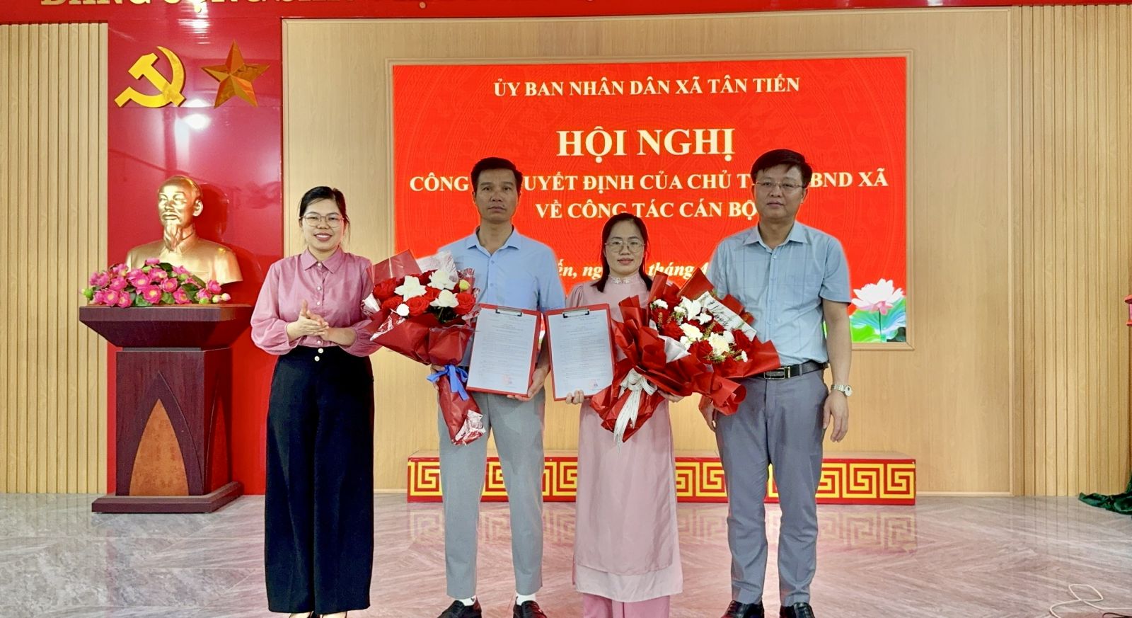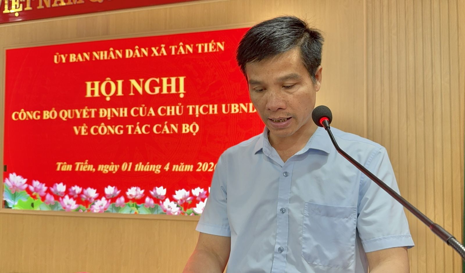 Tại hội nghị, đồng chí Hoàng Hồng Long, Trưởng phòng Văn hóa – Xã hội đã công bố Quyết định bổ nhiệm ông Âu Văn Cương, Chuyên viên Văn phòng HĐND và UBND xã, giữ chức vụ Phó Chánh Văn phòng HĐND và UBND xã Tân Tiến, công bố Quyết định bổ nhiệm bà Triệu Thị Phin, Chuyên viên Phòng Văn hóa – Xã hội, giữ chức vụ Phó Trưởng phòng Văn hóa – Xã hội xã Tân Tiến, kể từ ngày 01/4/2026, thời hạn bổ nhiệm 5 năm.