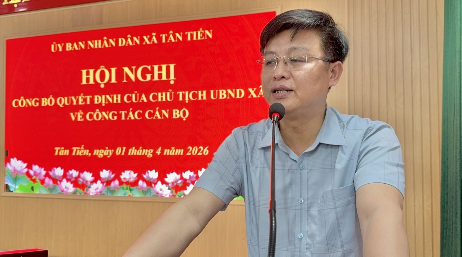 Sáng ngày 01/4/2026, UBND xã Tân Tiến, tỉnh Lạng Sơn tổ chức hội nghị công bố quyết định của Chủ tịch UBND xã về công tác cán bộ.
