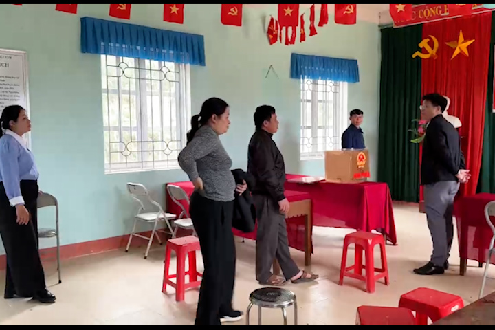 Đoàn kiểm tra bầu cử tại nhà văn hoá thôn Khuổi Biắp
