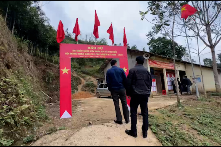 Đoàn kiểm tra niêm yết danh sách người ứng cử tại thôn Pàn Dào