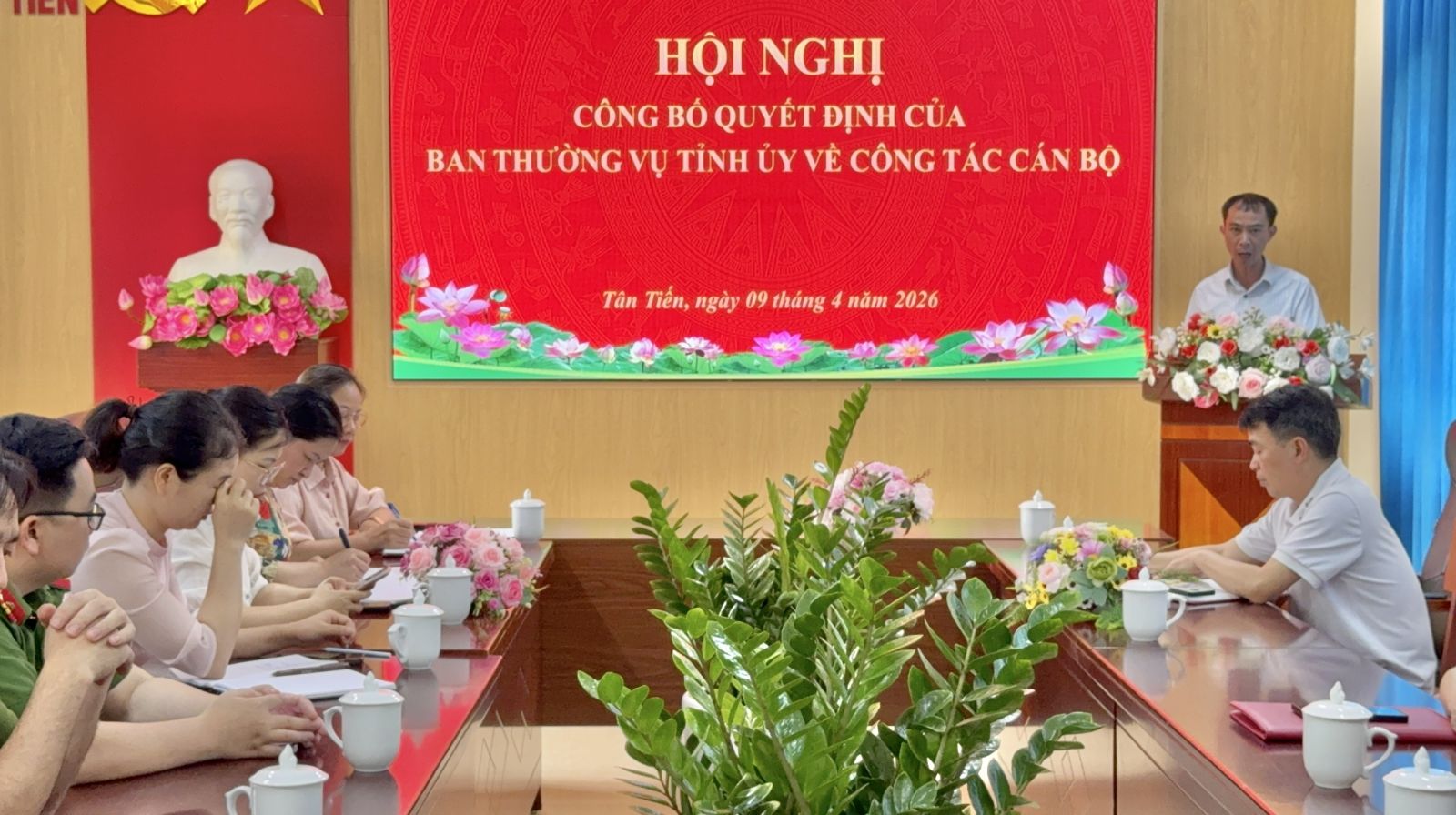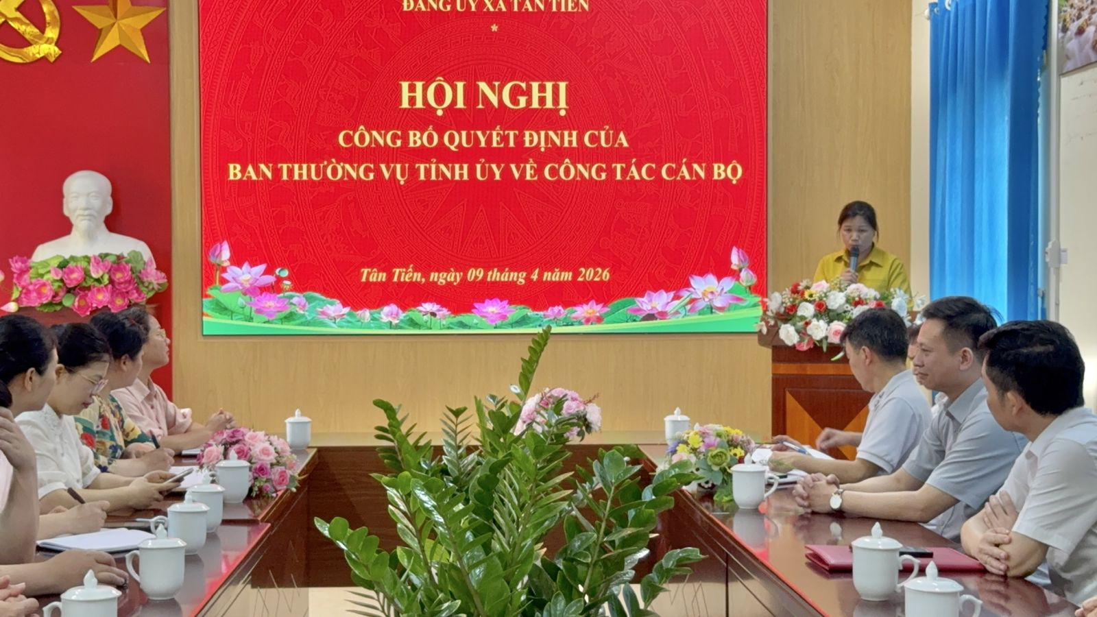 Sáng 09/4/2026, Đảng ủy xã Tân Tiến tổ chức hội nghị công bố các quyết định của Ban Thường vụ Tỉnh ủy về công tác cán bộ.