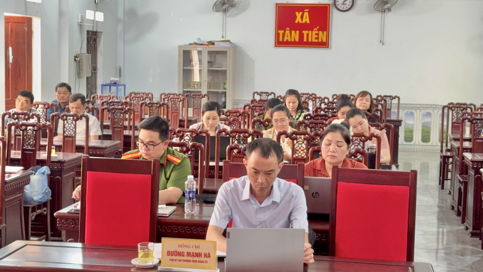 Tại điểm cầu xã Tân Tiến, có đồng chí Đường Mạnh Hà, Phó Bí thư Thường trực Đảng ủy xã chủ trì tại điểm cầu, cùng 49 đại biểu là các đồng chí báo cáo viên, tuyên truyền viên cơ sở, lãnh đạo, chuyên viên Ban Xây dựng Đảng, Bí thư các chi bộ trong toàn Đảng bộ.