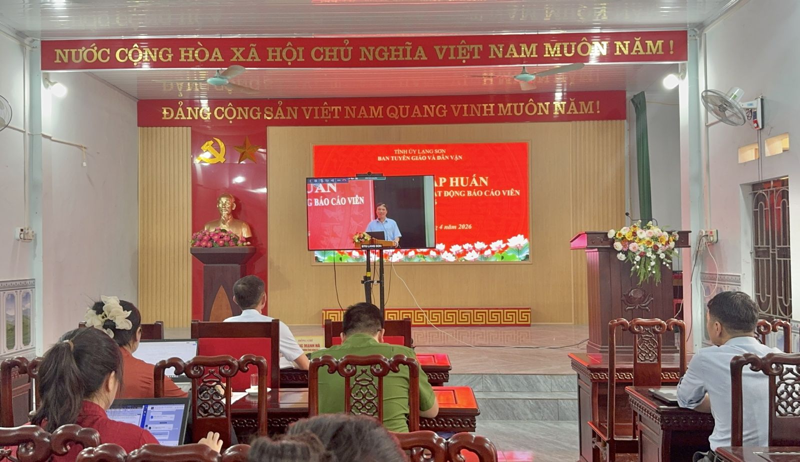 Chiều ngày 14/4/2026, Đảng ủy xã Tân Tiến tổ chức tiếp sóng trực tuyến Hội nghị tập huấn công tác tuyên truyền miệng, hoạt động báo cáo viên năm 2026 từ điểm cầu Ban Tuyên giáo và Dân vận Tỉnh ủy Lạng Sơn.