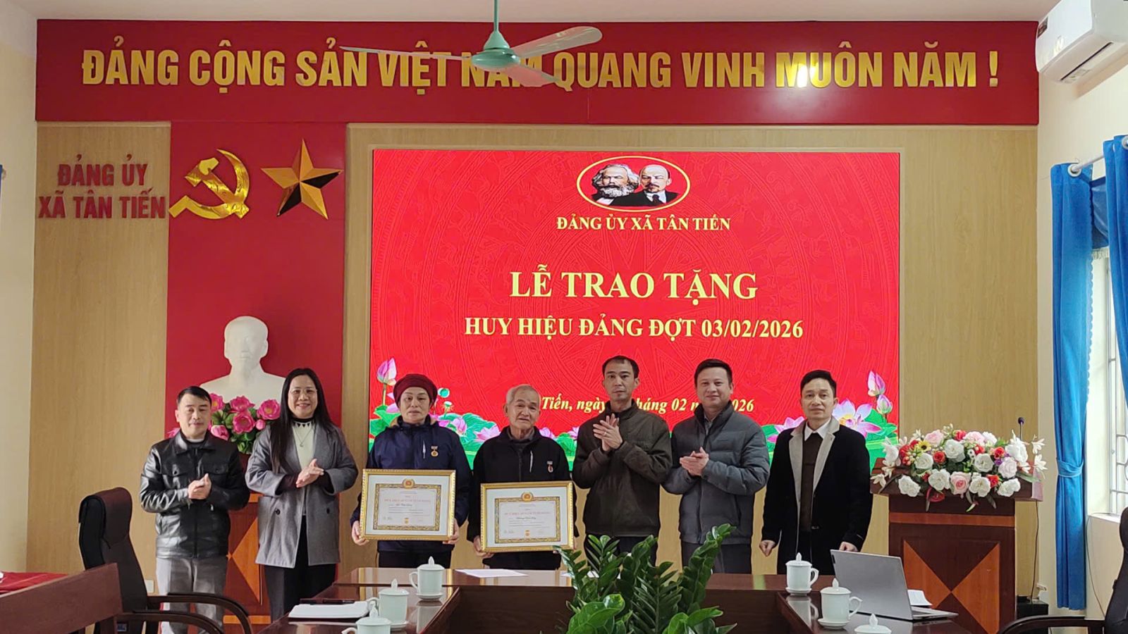 Nhân dịp kỷ niệm 96 năm Ngày thành lập Đảng Cộng sản Việt Nam (03/02/1930 - 03/02/2026), ngày 02/02, Đảng bộ xã Tân Tiến tổ chức Lễ trao tặng Huy hiệu Đảng đợt 03/02/2026 cho các đảng viên trên địa bàn xã.